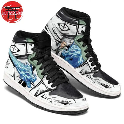 Chaussures hautes type Jordan 1 à l'effigie de Tōshirō Hitsugaya, le capitaine de la 10ème division du Goteï 13, ainsi le prodige de la soul society dans le manga Bleach™.